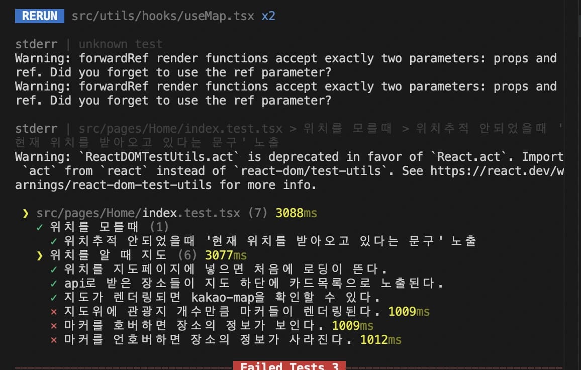 리렌더링을 정상화시키니, 불필요한 리렌더링에 의존하던 코드들에 사이드이펙트가 발생하면서 테스트가 실패하기 시작했다.